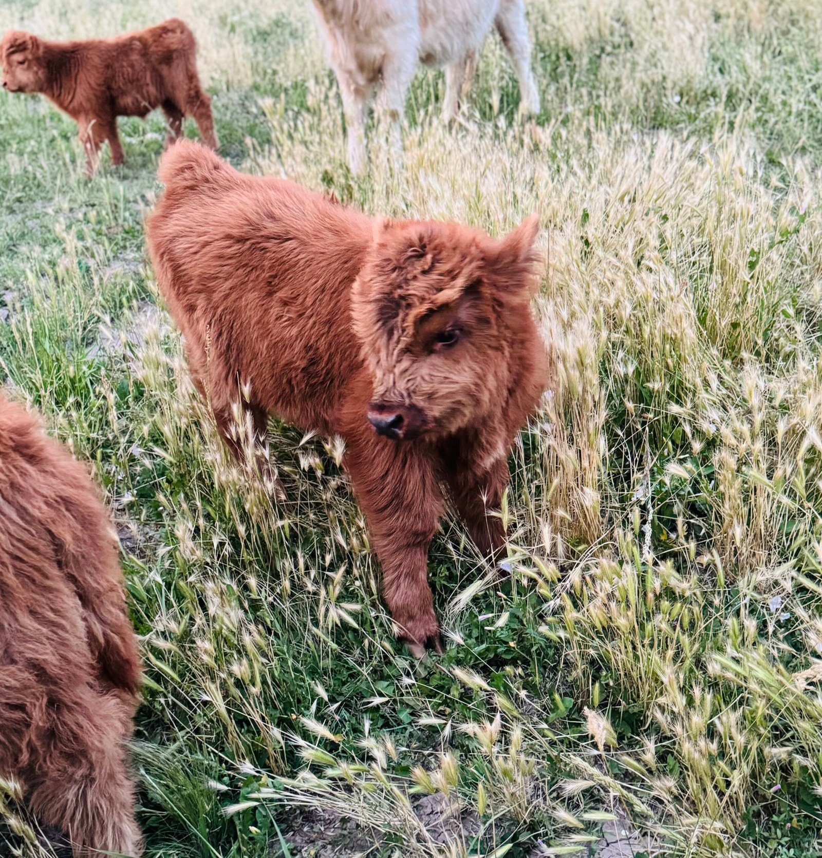 Red Brindle Highland Bull Calf – Cowboy x Piper
